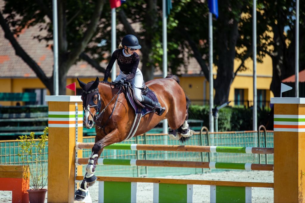• díjugratásnál akkor erős a kép, amikor a ló már felemelkedett, a lábak szorosan felhúzva, és a lovas stabil pozícióban van.